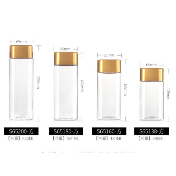 | Product name | Scented Tea Dried Fruit Food Packaging Bottle Clear Square Jar 200g 250g 500g Honey Plastic Storage Jars |